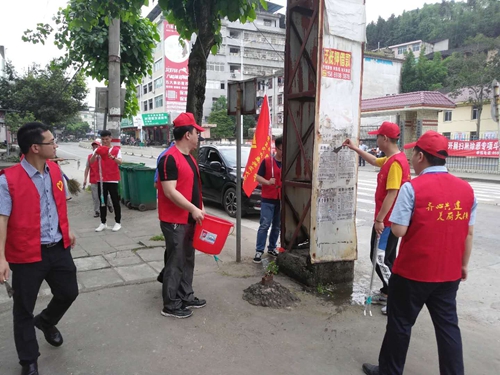 志愿者在清理小廣告 黃長榕/攝 5月13日,延平區大橫鎮青年志愿者20余人聯合社區工作人員開展人居環境整治工作,對鎮區街頭巷尾的小廣告、亂貼亂畫、橫幅臟污等現象進行清理。 大家帶著鑷子、鏟子、掃把、水桶等清潔工具走上街頭,對貼在墻面、電線桿、站牌等位置的小廣告進行清理,大家配合默契,有的潑水,有的用鏟子鏟,有的用掃把清掃鏟下來的紙屑,確保街道的整潔。 本次志愿服務活動,共清理貼在電線桿、墻面、站牌等位置的小廣告120余處,受到了群眾的好評。(黃長榕 文/圖) |