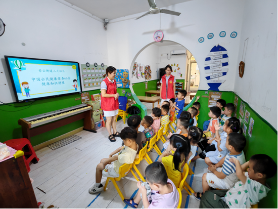 為進一步提升幼兒的健康意識,提升的自我保護意識和能力,9月14日,紫云街道三元社區進校園宣傳“健康素養66條”知識,助力健康網格化工作。 在課堂上,三元社區健康網格員與黨員志愿者一起通過生動有趣的方式向小朋友們宣傳如何踐行健康生活方式與行為。要講究個人衛生,養成良好的衛生習慣,勤洗手、常洗澡、勤換衣,不隨地吐痰,咳嗽或打噴嚏時用紙巾或肘袖遮擋,早晚刷牙、飯后漱口,科學使用消毒產品,積極預防疾病,做自己健康的第一責任人! 此次活動得到了幼兒園老師和家長的高度認可,不僅讓小朋友對健康知識有了初步的了解,也為他們養成良好的生活習慣,塑造健康體魄打下良好基礎。未來,我們將繼續宣傳活動,讓更多的孩子受益于健康知識的普及。 |