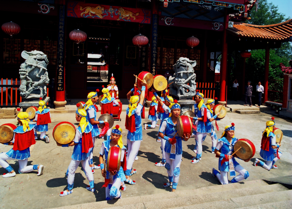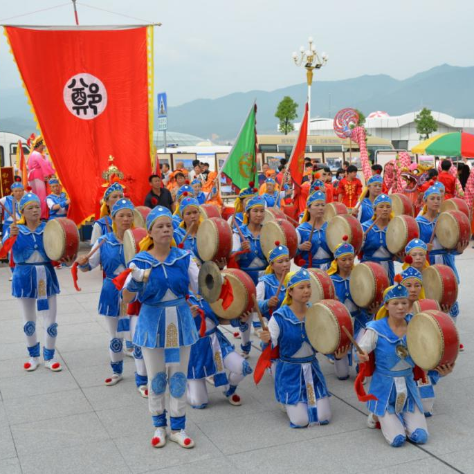 中國傳統(tǒng)文化的傳承 延平戰(zhàn)勝鼓,也稱“戰(zhàn)臺鼓”,它是由民族英雄鄭成功收復臺灣行軍中戰(zhàn)鼓隊列操練演變而來,是延平民間對“延平郡王”——鄭成功的紀念形式之一。 戰(zhàn)勝鼓主要以大鼓、扁鼓及手鈸等打擊樂器為主。扁鼓規(guī)格一律,鼓徑約35公分,厚約20公分,鼓手以左手臂環(huán)抱扁鼓于肩,右手揮槌,擊節(jié)要求擊出“進”、“到”兩種聲音,故俗稱為“進到鼓”;手鈸兩副,與鼓點協(xié)拍,聲響渾厚雄壯,粗獷有力,氣勢磅礴,頗具戰(zhàn)斗氣勢,故有“峽陽的鼓聲,連三十里外的洋口都能聽見”的說法。