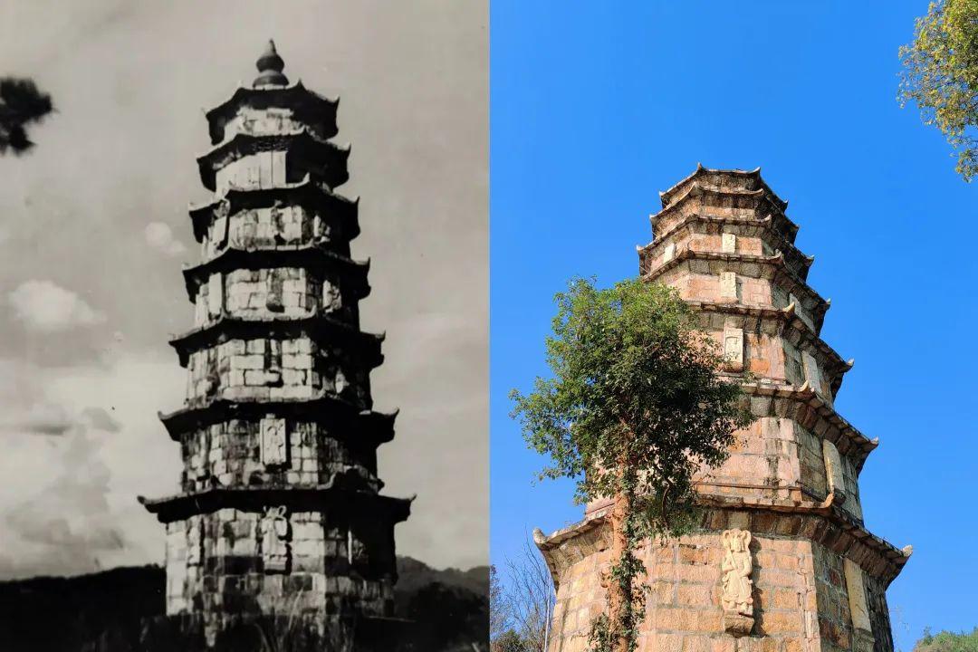 44年前的東塔(照片由方方提供)與現(xiàn)在的東塔 |