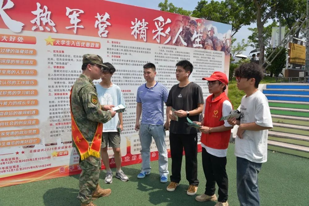 為進一步激發大學生投身國防、建功軍營的報國熱情,精準高效服務有志青年實現軍旅夢想,6月8日上午,按照區委、區政府工作部署,區人民武裝部在閩北職業技術學院體育場組織開展“2025年秋季征兵宣傳進高校”活動。現場氣氛熱烈,政策解讀深入淺出,為莘莘學子鋪就了一條清晰、便捷的從軍報國之路。區委常委、區征兵辦主任李順才參加活動。