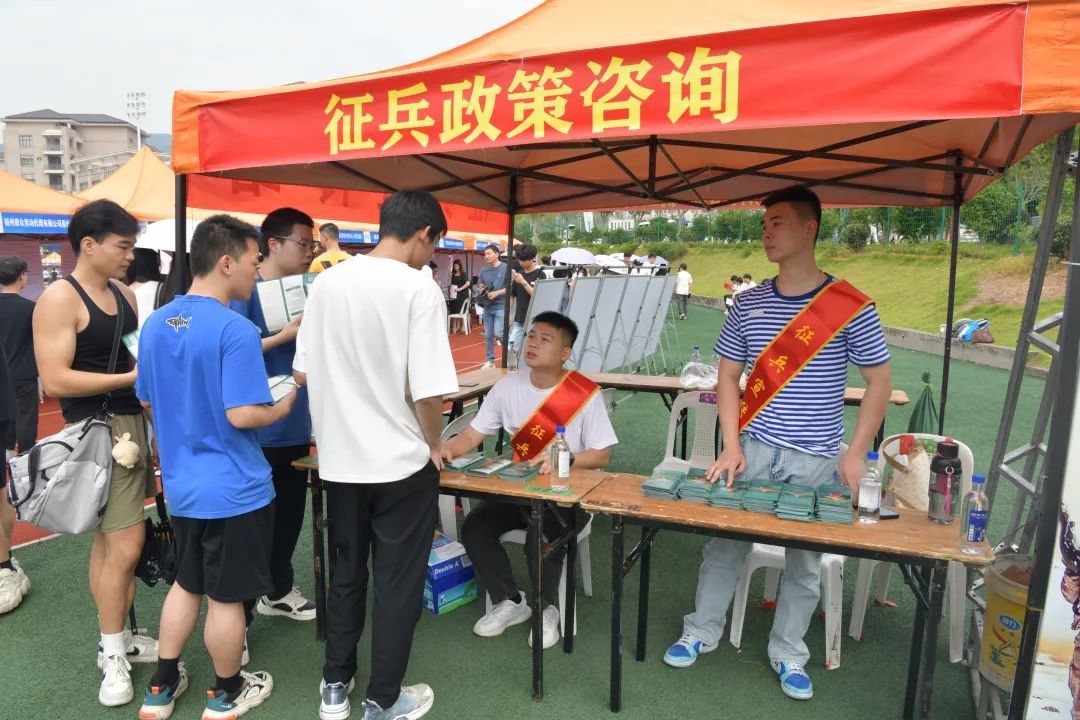 活動現場,征兵宣傳工作人員穿梭于人流中,將承載著希望與召喚的宣傳資料遞到學生手中,吸引熱情的學生層層圍繞,就入伍流程、學籍保留、學費補償代償、考研升學加分、落戶就業等學生高度關切的熱點問題進行耐心解答。