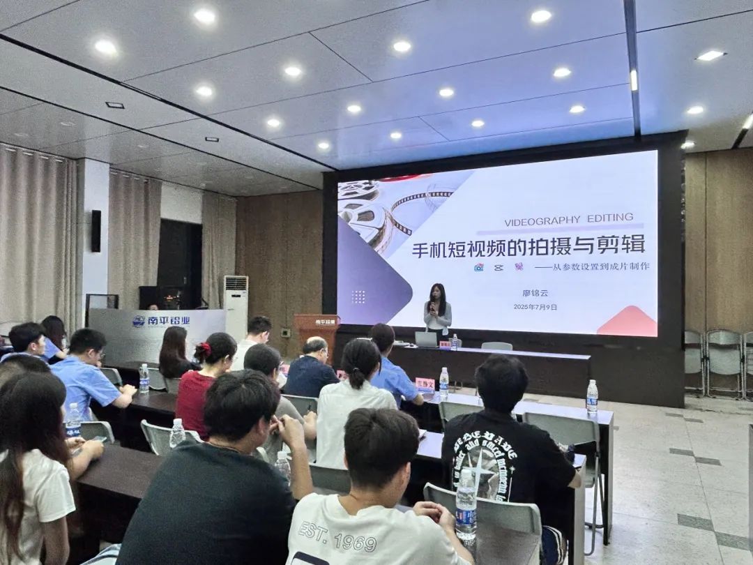 首期課程聚焦青年普遍關注的“手機視頻剪輯”,特邀教師授課。課上,老師化身“指尖導師”,揭秘九宮格構圖、黃金拍攝角度等實用竅門。在后期制作環節,手把手教大家選素材、搭音樂、加特效,巧用語音轉文字,還傳授光線調色秘籍。理論課后,老師現場實操示范,學員們直呼干貨滿滿,學到的技能馬上就能用在實際中。