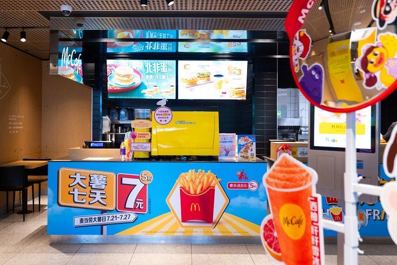 麥當勞“大薯日”活動 夏日餐飲消費熱力十足。在福州倉山區煙臺山麥當勞門店里,“大薯日”活動吸引了不少消費者。麥當勞中國巧妙地將中國傳統節氣“大暑”與自家經典的大份薯條結合,諧音打造出“大薯日”,今年,第十一屆大薯條節以“有薯就夠”為主題,再次點燃消費者的熱情。 據介紹,7月21日至27日,麥當勞會員可通過麥當勞App/小程序領取專屬優惠券,享受限時7元的大薯條或脆脆薯條。麥當勞還推出限定周邊“大薯狀態燈”。它形似道路指示牌,融入經典薯條標識,設有“請勿偷薯”與“有薯自取”雙面提示。 “帶著孩子逛煙臺山,看見麥當勞‘大薯日’的海報,就想著進來歇腳納涼。”張先生說,孩子特別喜歡“大薯狀態燈”,玩得很開心。據店員介紹,活動啟動后,門店客流明顯增加,尤其是傍晚,常有家庭、朋友結伴而來,點上幾份薯條搭配飲品,享受輕松的夏日時光。