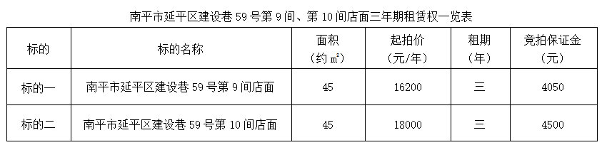 南平市延平區(qū)建設(shè)巷59號第9間、第10間店面三年期租賃權(quán)