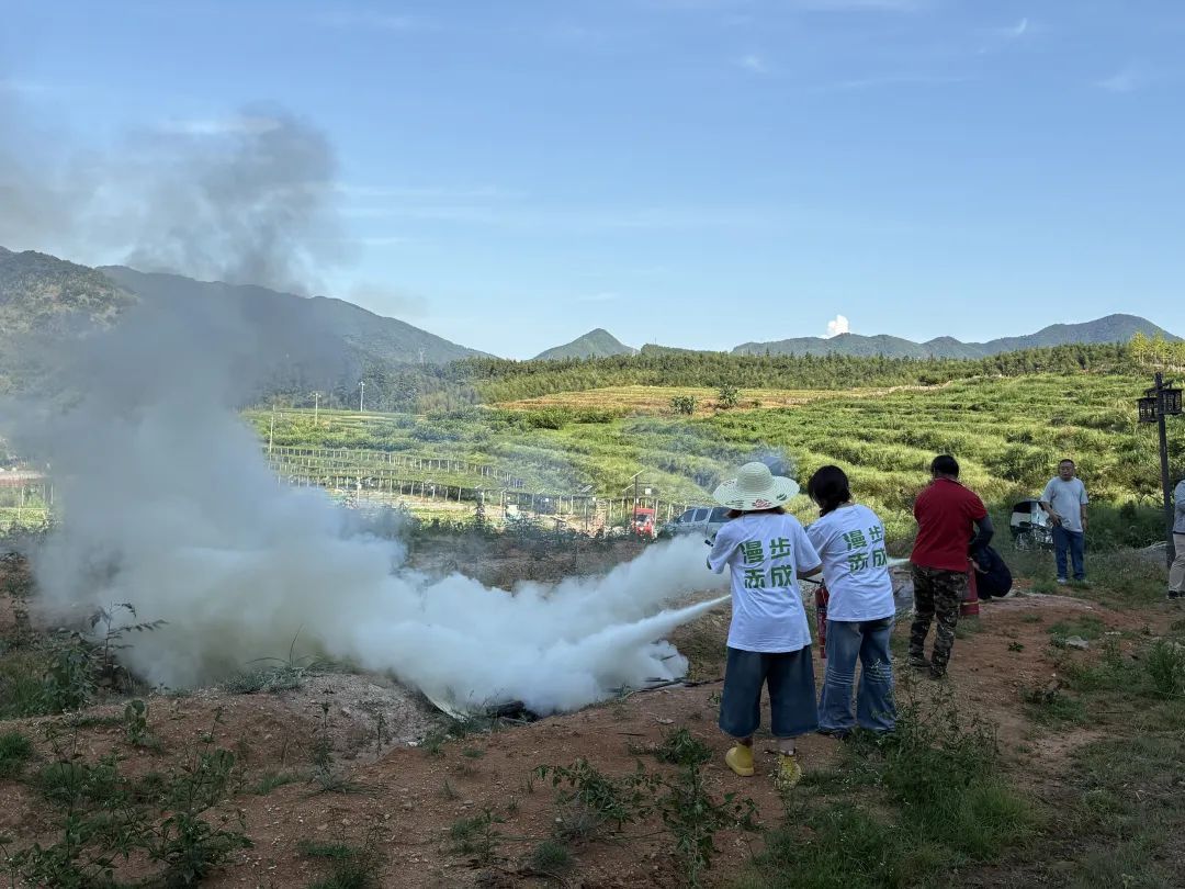 “火情警報!演練開始!”隨著指令下達,現場模擬火堆瞬間燃起滾滾濃煙,火光與煙霧交織,營造出緊張逼真的火情氛圍。赤成實業員工在鄉防火辦工作人員的高效調度下,迅速沖向消防器材存放點,熟練取用干粉滅火器與消防水帶,按照預定處置流程分工協作,展開緊張有序的滅火行動。