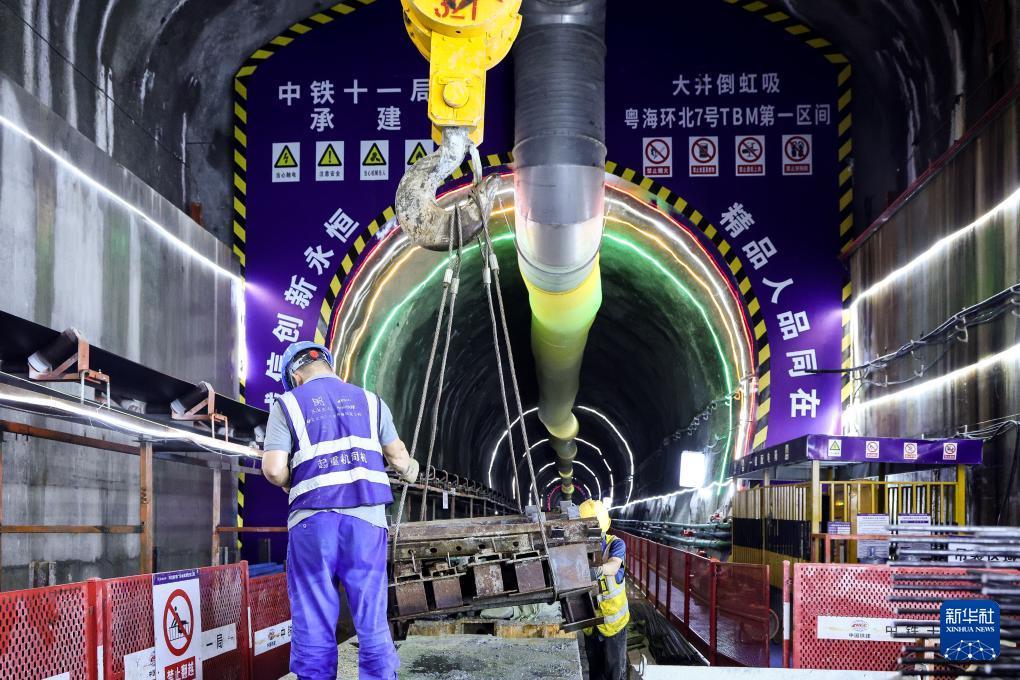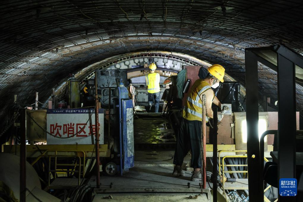 施工人員在大仁支洞工區(qū)主支洞交叉口作業(yè)(8月11日攝)。 日前,中鐵十一局承建的環(huán)北部灣廣東水資源配置工程B2標“粵海環(huán)北7號”全斷面敞開式硬巖掘進機(TBM)掘進突破700米,項目施工從啟動適應期邁入高效推進期。 環(huán)北部灣廣東水資源配置工程是國家水網(wǎng)骨干工程之一,建成后將優(yōu)化區(qū)域水資源配置格局。 新華社記者 劉大偉 攝