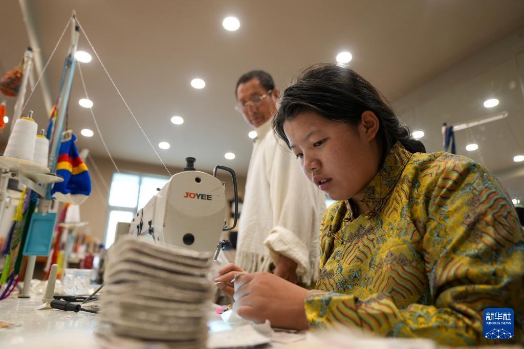 洛桑麥朗(左)在學校指導學徒(8月15日攝)。 在拉薩雪堆白傳統手工藝術學校,60歲的西藏自治區級非物質文化遺產項目藏族服飾(拉薩服飾)代表性傳承人洛桑麥朗,與學徒一道研究、制作藏裝。從藝四十余載,他培養了百余名弟子,還參與編撰教材、建立藏族服飾數據庫等工作。在他的巧手下,新式藏裝將傳統與現代交融,讓非遺技藝與現代審美碰撞,成為街頭一道靚麗的風景。 新華社記者 晉美多吉 攝
