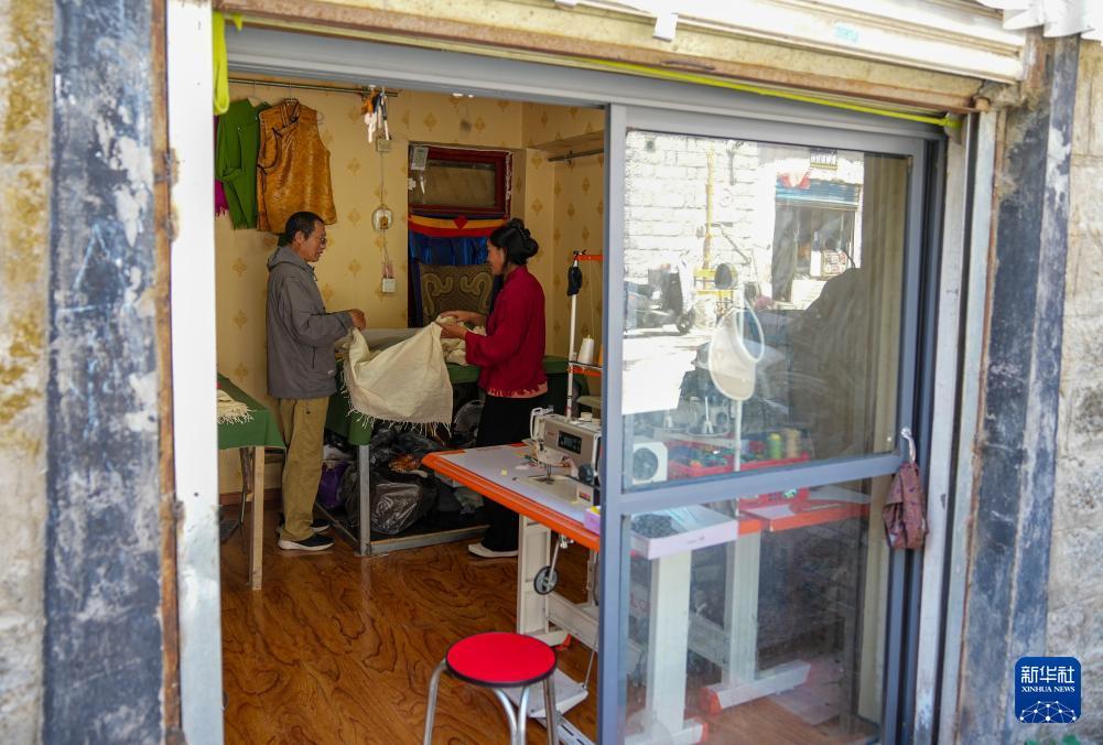 洛桑麥朗(左)來到畢業生創業的店鋪里,詢問生意情況(8月15日攝)。 在拉薩雪堆白傳統手工藝術學校,60歲的西藏自治區級非物質文化遺產項目藏族服飾(拉薩服飾)代表性傳承人洛桑麥朗,與學徒一道研究、制作藏裝。從藝四十余載,他培養了百余名弟子,還參與編撰教材、建立藏族服飾數據庫等工作。在他的巧手下,新式藏裝將傳統與現代交融,讓非遺技藝與現代審美碰撞,成為街頭一道靚麗的風景。 新華社記者 晉美多吉 攝