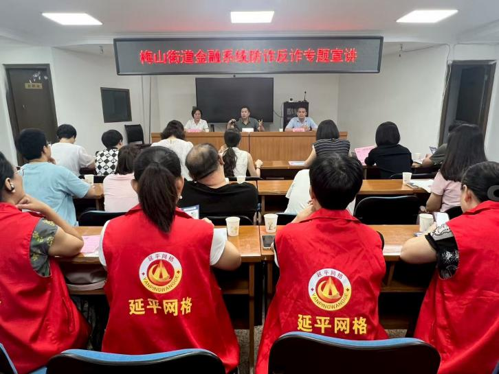 金融安全關(guān)乎千家萬戶。8月21日,一場干貨滿滿的金融系統(tǒng)防詐反詐專題宣講活動(dòng)在梅山街道拉開序幕。轄區(qū)各社區(qū)書記、綜治協(xié)管員及專職網(wǎng)格員齊聚一堂,認(rèn)真聆聽來自興業(yè)銀行和海峽銀行工作人員的專業(yè)分享。這些工作人員都有個(gè)統(tǒng)一的身份——“金融網(wǎng)格員”。他們通過現(xiàn)場教學(xué)、發(fā)放宣傳手冊、播放PPT和短視頻等方式,向在場人員講授金融防詐反詐“必修課”,并正式與相關(guān)社區(qū)網(wǎng)格建立結(jié)對(duì)關(guān)系。