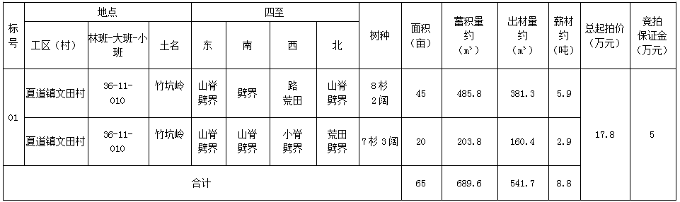 南平市延平區(qū)夏道鎮(zhèn)文田村“竹坑嶺”2片山場的林木生產銷售權(整體競拍)二次競拍