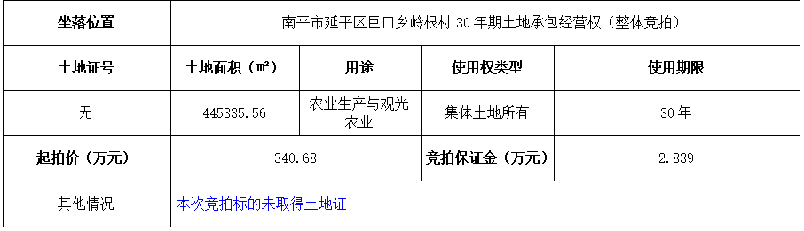 南平市延平區(qū)巨口鄉(xiāng)嶺根村30年期土地承包經(jīng)營權(quán)(整體競拍)