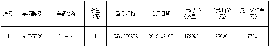 受委托,定于2025年9月11日上午9:00,通過延平區陽光平臺(http://ypygpt.zgpm.com/)舉行公開網絡競拍: 一、競拍標的:別克牌閩HXG720小型普通客車轉讓,具體詳見下表: 別克牌閩HXG720小型普通客車轉讓一覽表