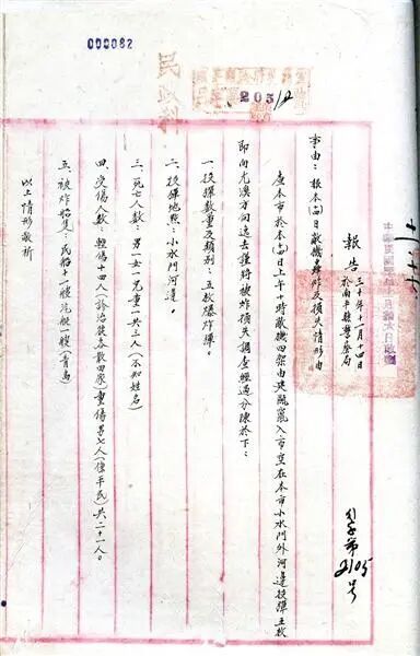 南平警察局向南平縣政府報告日機轟炸小水門情形