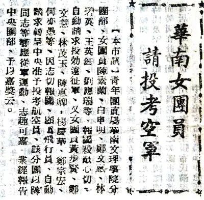 華南女團員 請投考空軍 (1944年4月29日《南方日報》