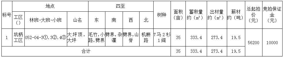南平市延平區塔前鎮“坑柄工區”一片山場的林木生產銷售權(整體競拍)