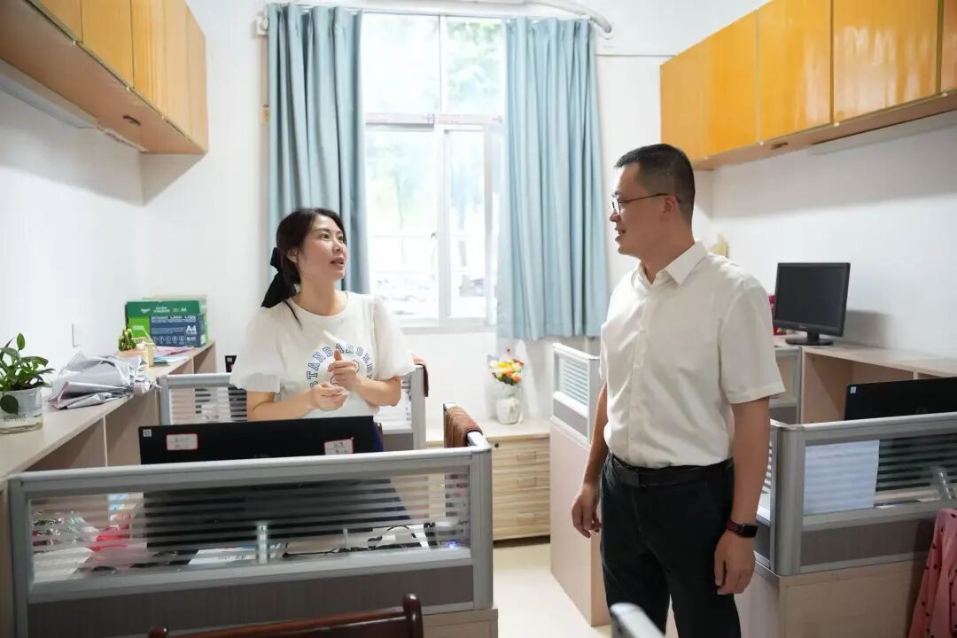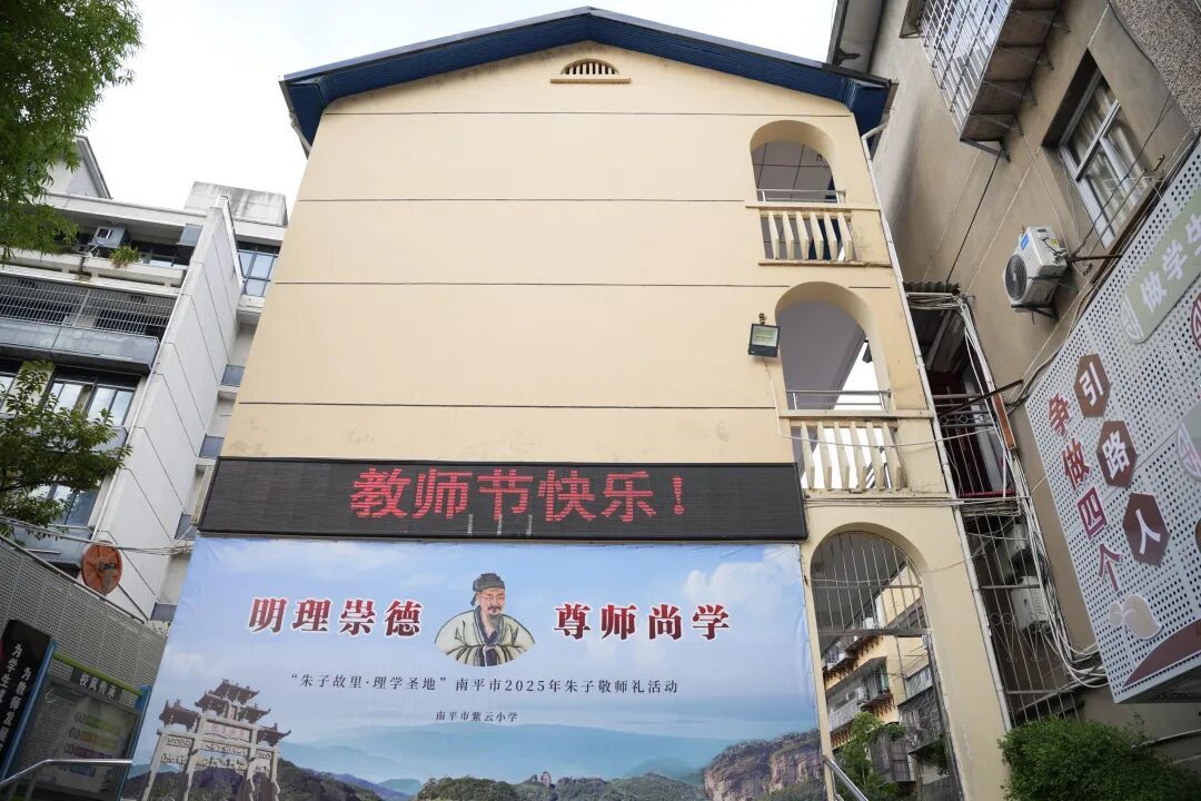 南平市紫云小學成立于1958年,是一所具有深厚文化底蘊和鮮明辦學特色的小學。走進整潔有序的校園,黃桂誠詳細了解學校的硬件設施、師資配置、辦學特色等情況?!肮澣湛鞓?,大家辛苦了!”黃桂誠先后來到操場、教師辦公室、教室等地,與教師親切交流,向大家致以節日的祝福,并勉勵大家牢記為黨育人、為國育才的使命,繼續以愛心與責任感投身教育事業,不斷探索創新教學方法,培養德智體美勞全面發展的學生。