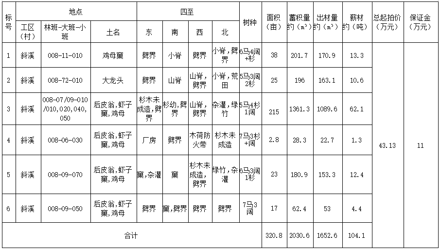 南平市延平區(qū)爐下鎮(zhèn)斜溪“雞母窠、大龍頭等”6片山場的林木生產(chǎn)銷售權(quán)(整體競拍)