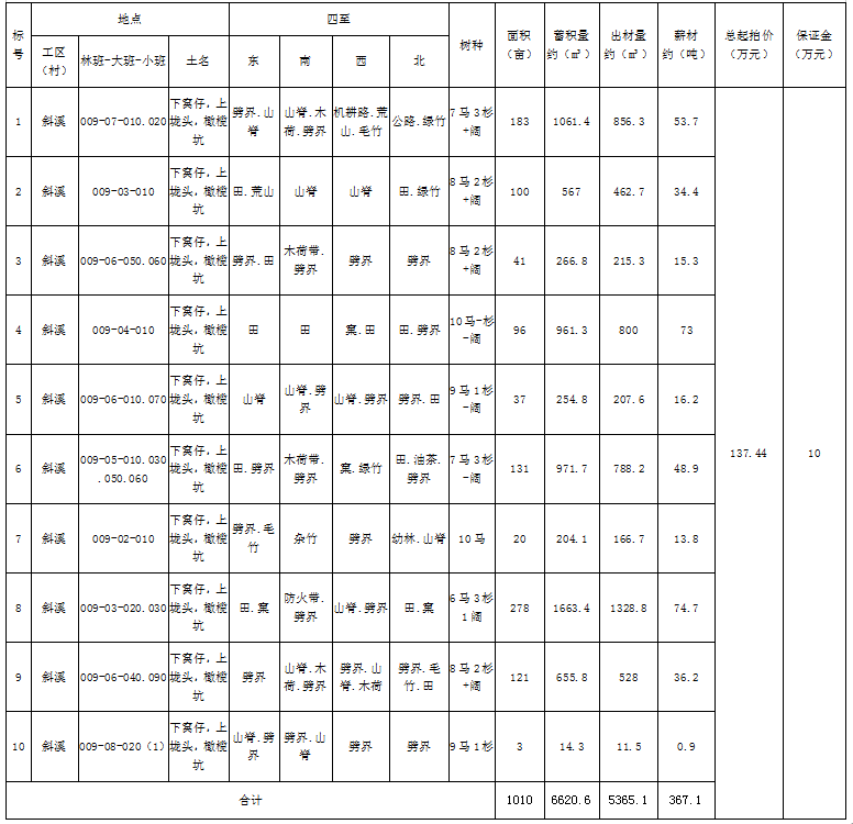 受委托,定于2025年10月10日上午9:00,通過延平區陽光平臺(http://ypygpt.zgpm.com/)舉行公開網絡競價: 一、競拍標的:南平市延平區爐下鎮斜溪村“下窩仔,上垅頭等”10片山場的林木生產銷售權(整體競拍)(采伐類型:主伐、其他采伐,采伐方式:皆伐;采伐面積1010畝,總蓄積量約6620.6m3,出材量約5365.1m3,總起拍價137.44萬元;具體詳見下表: 南平市延平區爐下鎮斜溪村“下窩仔,上垅頭等”10片山場的林木生產銷售權(整體競拍)一覽表