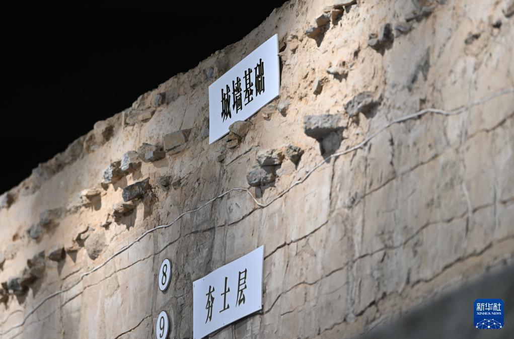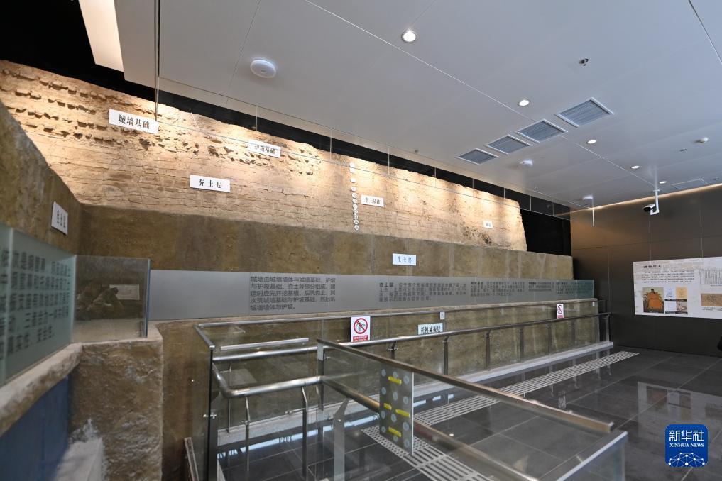 10月10日拍攝的天津衛故城東城墻遺址文物展廳內一角。 近日,位于天津地鐵4號線東南角站的天津衛故城東城墻遺址文物展廳正式開放,展廳內21米長的城墻遺址層次分明,讓乘客在出行時也能了解天津歷史。 2017年,在天津地鐵4號線東南角站施工過程中發現文物痕跡,后經文物部門確定為明清時期天津衛故城東城墻遺址,實施原址原狀保護和有效展示利用。 新華社記者 李然 攝