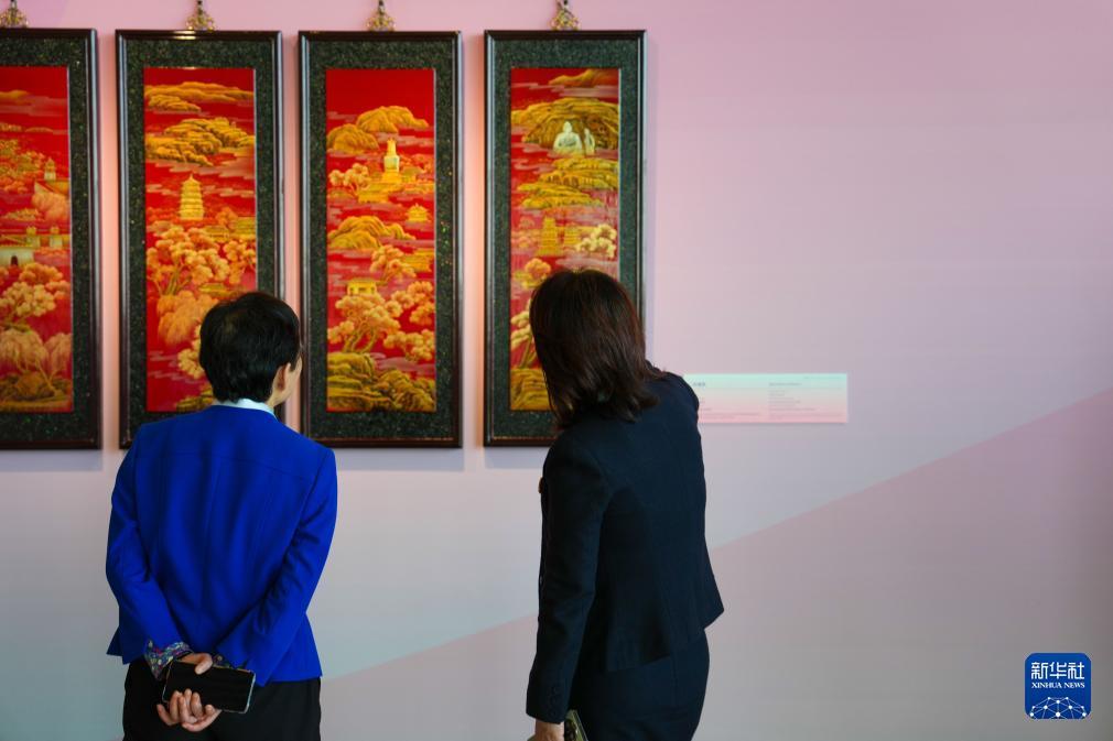 10月13日,參會(huì)嘉賓參觀全球婦女峰會(huì)女性主題特展"華韻承芳·非遺共賞"。 10月13日,全球婦女峰會(huì)在北京舉行。 新華社記者 顏麟蘊(yùn) 攝
