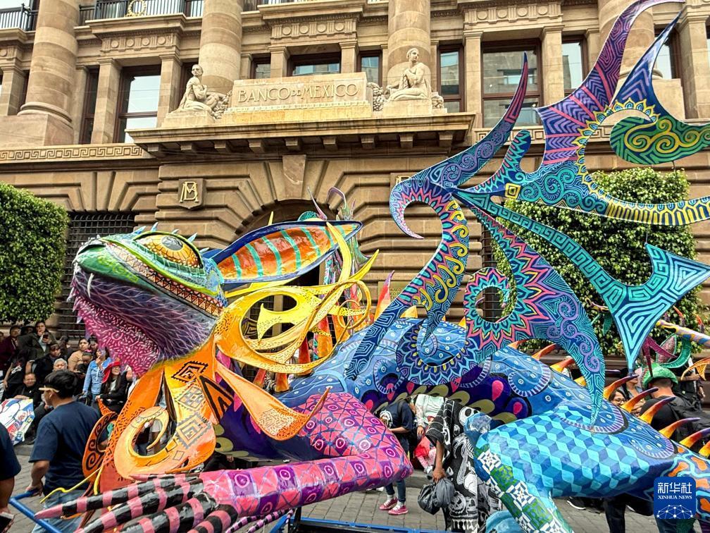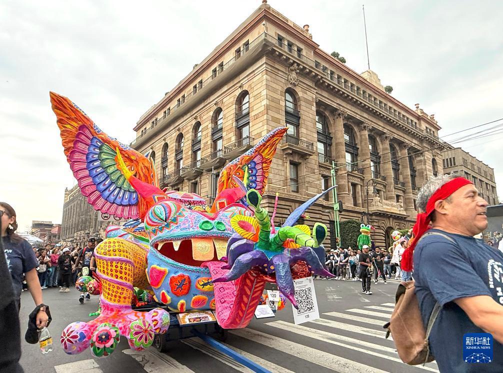 這是10月18日在墨西哥首都墨西哥城拍攝的魔幻動物大游行現場(手機照片)。 當日,為迎接即將到來的亡靈節,墨西哥城舉辦魔幻動物“Alebrijes”大游行。“Alebrijes”是一種墨西哥傳統手工藝品,用鮮艷的顏色和豐富的圖案裝飾,展現充滿想象力的奇幻動物形象。 新華社記者 武巍 攝