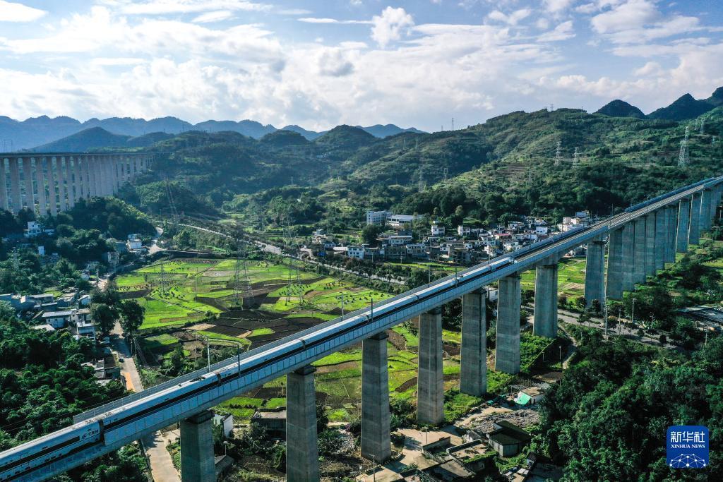10月17日,運行試驗列車經過貴州盤興高鐵三標段納懷河特大橋(無人機照片)。 目前,新建貴州盤州至興義高速鐵路進入運行試驗階段,線路開通進入倒計時。 盤興高鐵設計時速250公里,正線長度約98公里,全線共設車站3座。盤興高鐵是貴州省實現"市市通高鐵"目標的最后一個項目,項目建成通車后,貴陽至興義2小時可達,對完善區域鐵路網布局,促進當地經濟發展具有重要意義。 新華社記者 楊文斌 攝