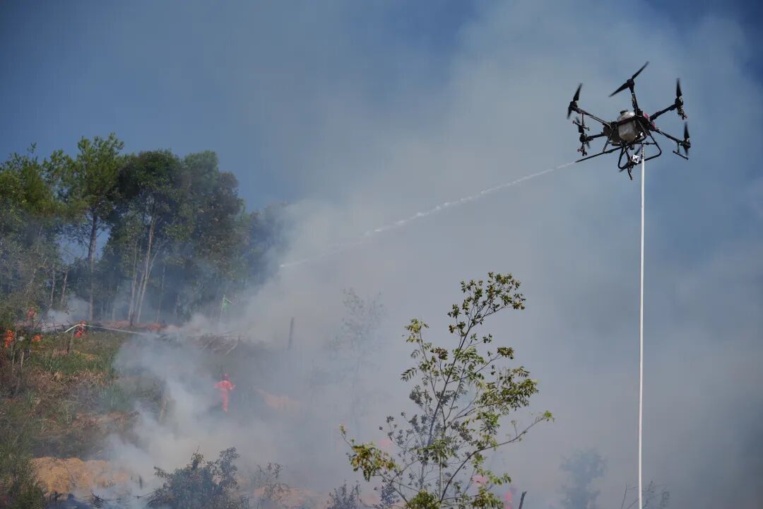 演練現(xiàn)場(chǎng),隨著演練指令下達(dá),各參演隊(duì)伍攜帶專(zhuān)業(yè)裝備迅速有序投入“戰(zhàn)斗”。演練中,各隊(duì)伍緊密配合,運(yùn)用“組合滅火”戰(zhàn)術(shù)展開(kāi)立體撲救。空中,應(yīng)急救援無(wú)人機(jī)精準(zhǔn)執(zhí)行物資運(yùn)送任務(wù),將滅火器材和救援物資快速投送至指定區(qū)域,同時(shí)協(xié)同開(kāi)展空中滅火作業(yè),有效壓制火情蔓延;地面,消防隊(duì)員利用風(fēng)力滅火機(jī)開(kāi)辟隔離帶,手持滅火水槍精準(zhǔn)打擊火點(diǎn)......