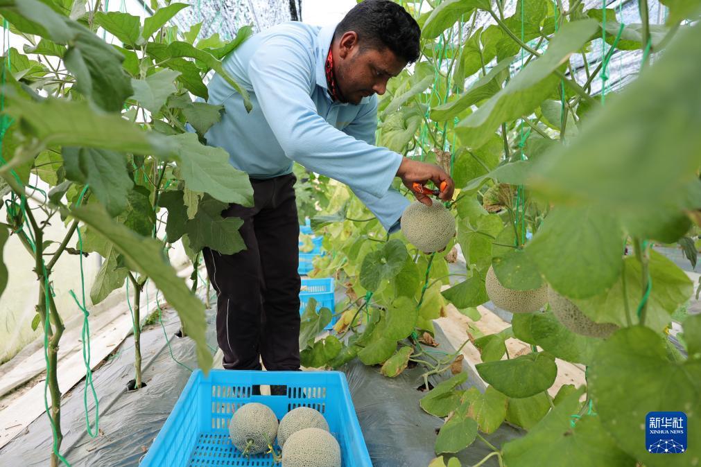 11月3日,在文萊斯里巴加灣市郊一處農業科技產業園,來自中國寧夏回族自治區固原市的農業技術專家李繼華檢查剛采摘下來的網紋蜜瓜。 近年來,文萊政府不斷深化與中國在農業領域的交流合作。在文萊斯里巴加灣市郊一處農業科技產業園,通過中國沙培技術成功種植的網紋蜜瓜近日喜獲豐收,在當地市場很受歡迎。此外,該產業園還利用中國先進農業技術及農業設備開展草莓、茄子、辣椒等果蔬的培育種植,在為文萊市場提供高品質果蔬產品的同時,進一步推動文萊農業現代化發展。 新華社記者 李萌 攝