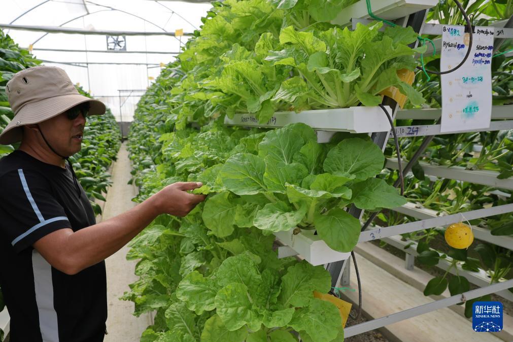 11月3日,在文萊斯里巴加灣市郊一處農業科技產業園,來自中國寧夏回族自治區固原市的農業技術專家李繼華查看用水培技術種植的蔬菜的生長情況。 近年來,文萊政府不斷深化與中國在農業領域的交流合作。在文萊斯里巴加灣市郊一處農業科技產業園,通過中國沙培技術成功種植的網紋蜜瓜近日喜獲豐收,在當地市場很受歡迎。此外,該產業園還利用中國先進農業技術及農業設備開展草莓、茄子、辣椒等果蔬的培育種植,在為文萊市場提供高品質果蔬產品的同時,進一步推動文萊農業現代化發展。 新華社記者 李萌 攝