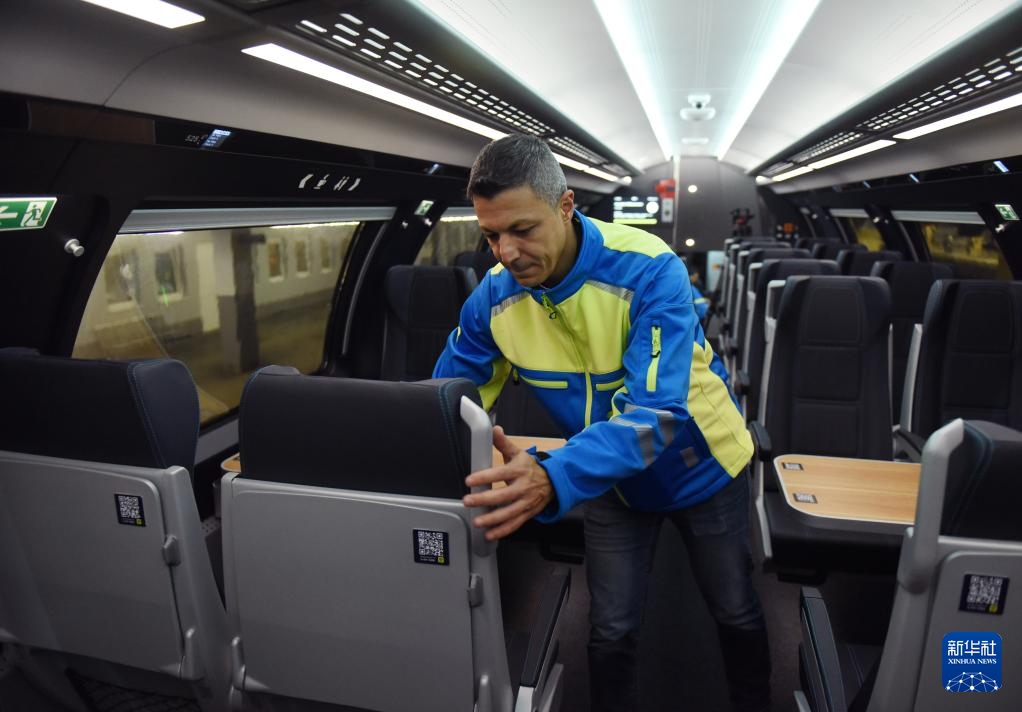 11月3日,在奧地利維也納,奧地利西部鐵路公司員工在車廂內(nèi)調(diào)整座椅靠背。 由中國企業(yè)制造的雙層列車日前在奧地利首都維也納亮相,將用于維也納與薩爾茨堡兩座城市間客運(yùn)鐵路運(yùn)營。這是中國制造雙層列車首次正式投入奧地利客運(yùn)鐵路系統(tǒng)。 新華社記者 賀燦鈴 攝 |